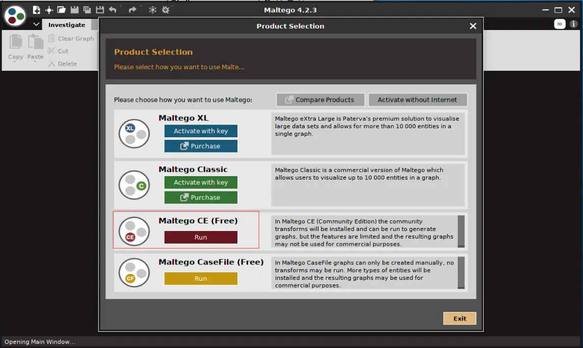 但是这个查找文件必须是付费的账号才能使用的,还有一些其他功能都是需要付费的,分别是Maltego Classic和Maltego XL版本,售价Classic售价999欧元和XL版本售价1999欧元,并且只是一年的使用期限,用不起付费版的话还是乖乖地写命令行吧