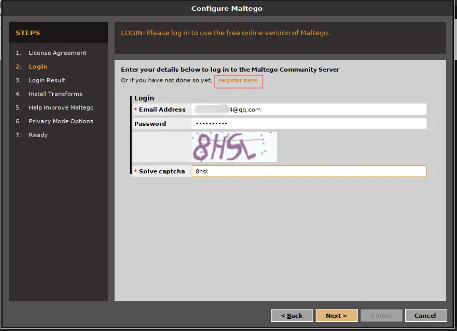 首先他会问你是否同意一些协议,通过后就会显示登陆窗口,如果没有账号需要到他的官网注册一个,自己的个人邮箱就可以注册