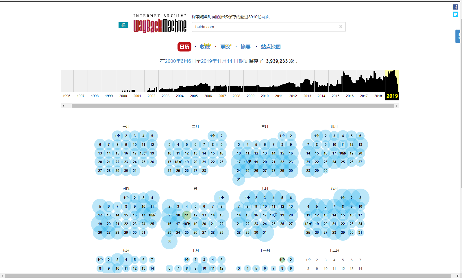 蓝色的都是这个网站的快照版本,随机点进去一个你会发现是目标网站曾经用过的页面