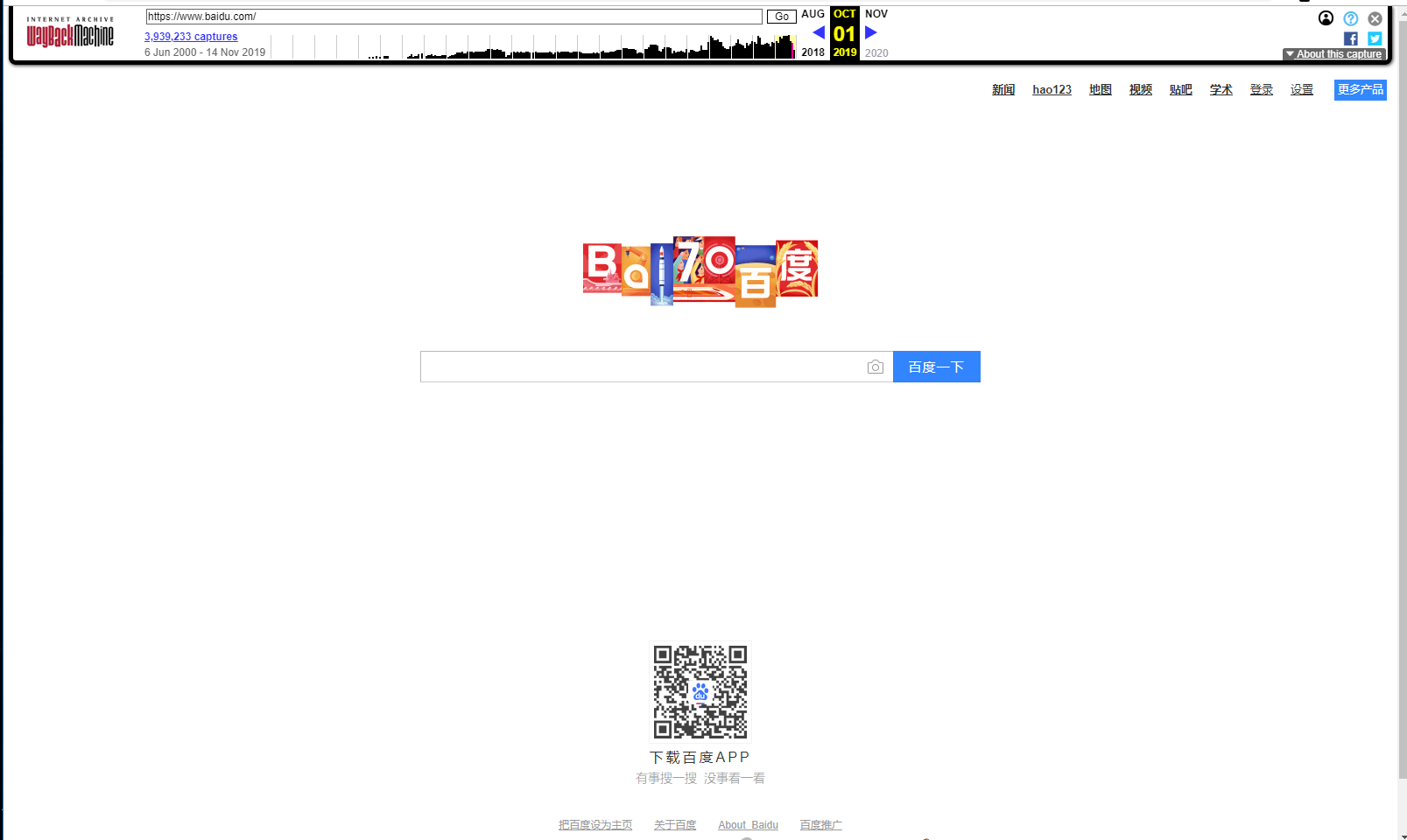 这个网站他只收集互联网上面的网站版本信息,每隔一段时间收集一次,我们可以利用这个查询目标公司历史性的都是用过哪些版本