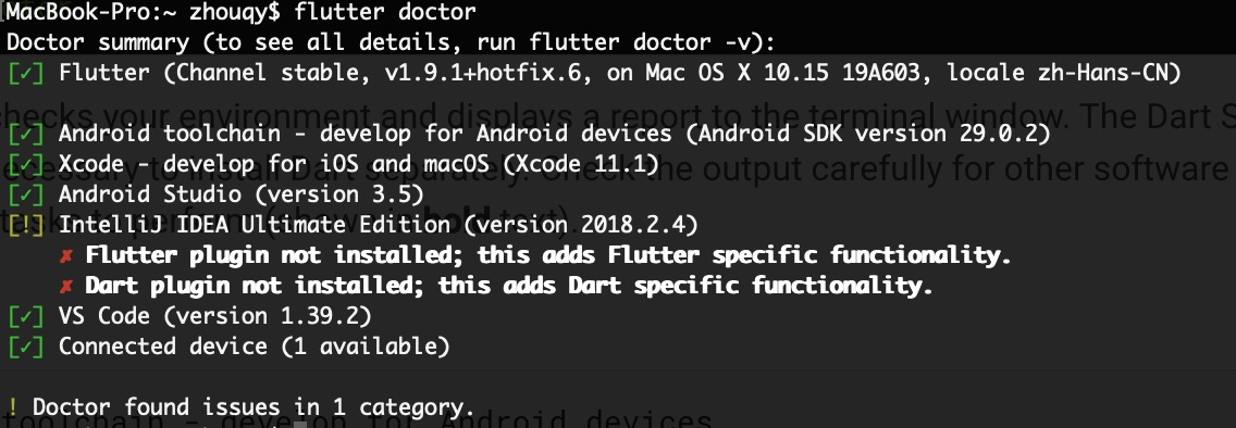 例如,在我的电脑上某次执行flutter doctor的结果如下: