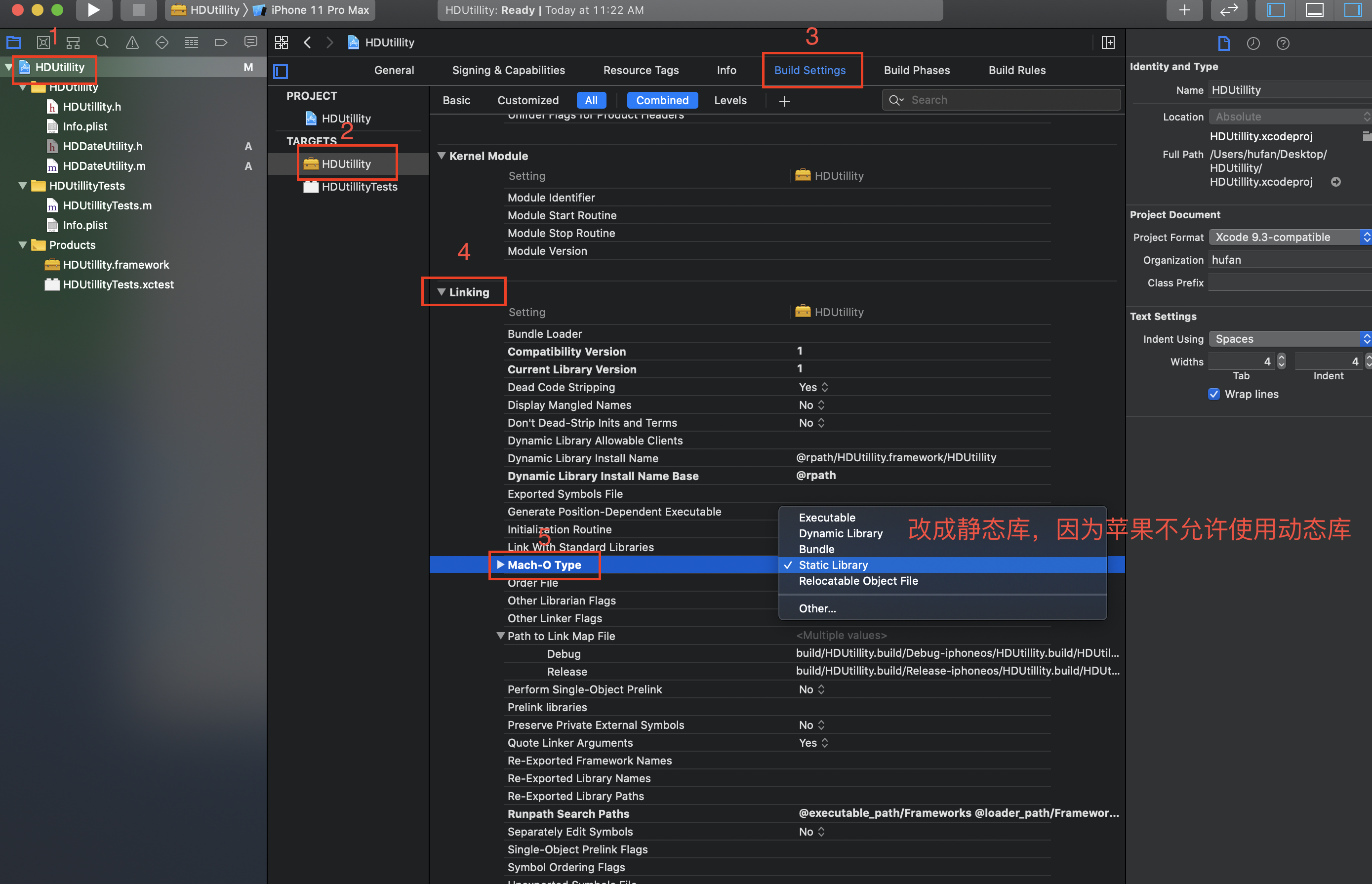 定位到target - build settings,找到Linking,Match-o Type选项可选择编译成静态库或动态库。