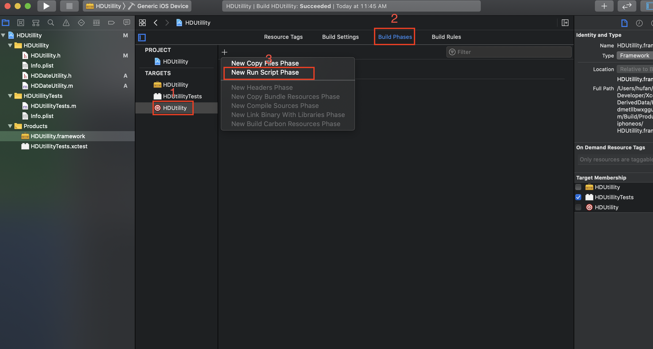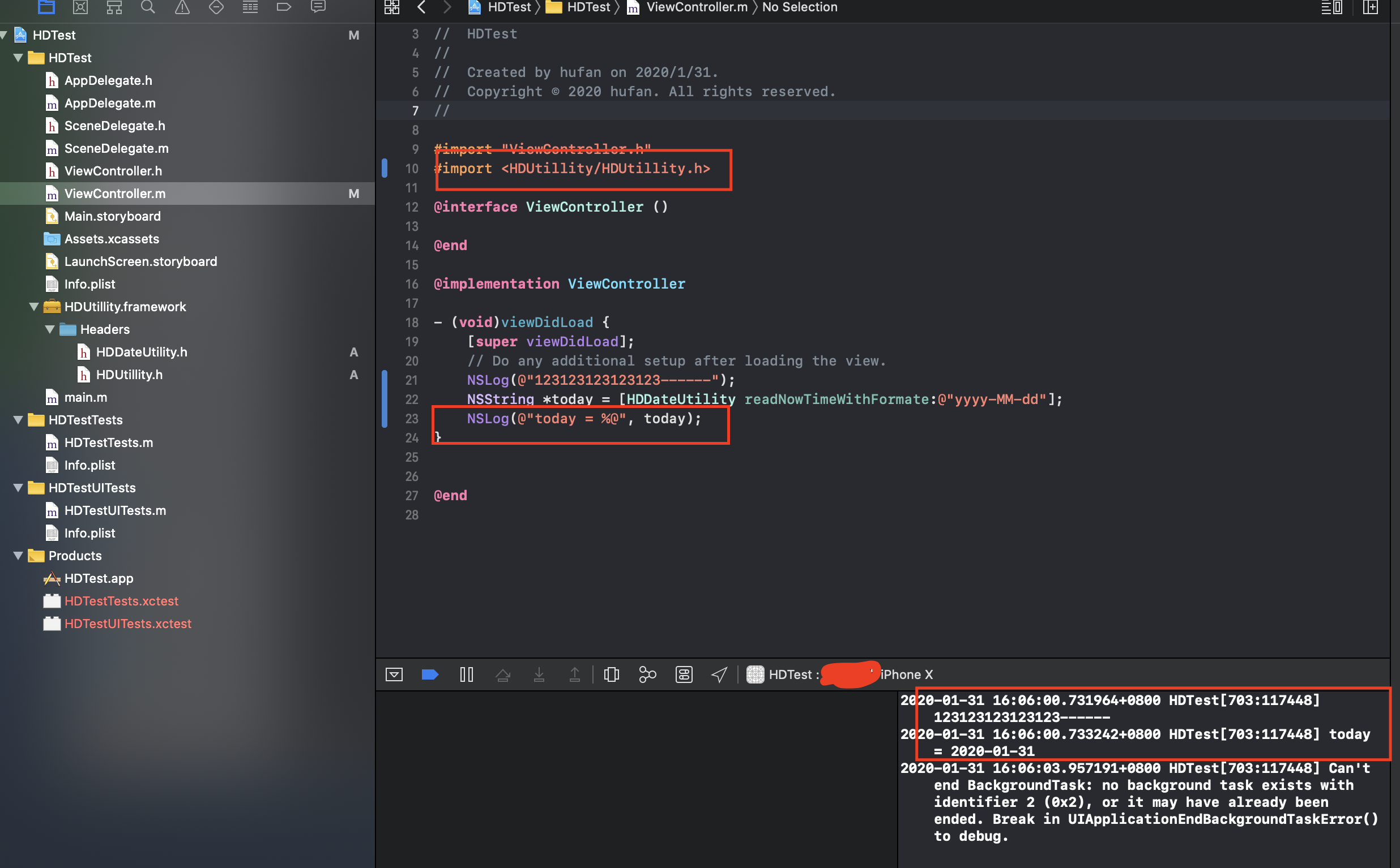 新建一个最简单的Project,我这里取名HDTest,把生成好的Framework文件夹拖进去