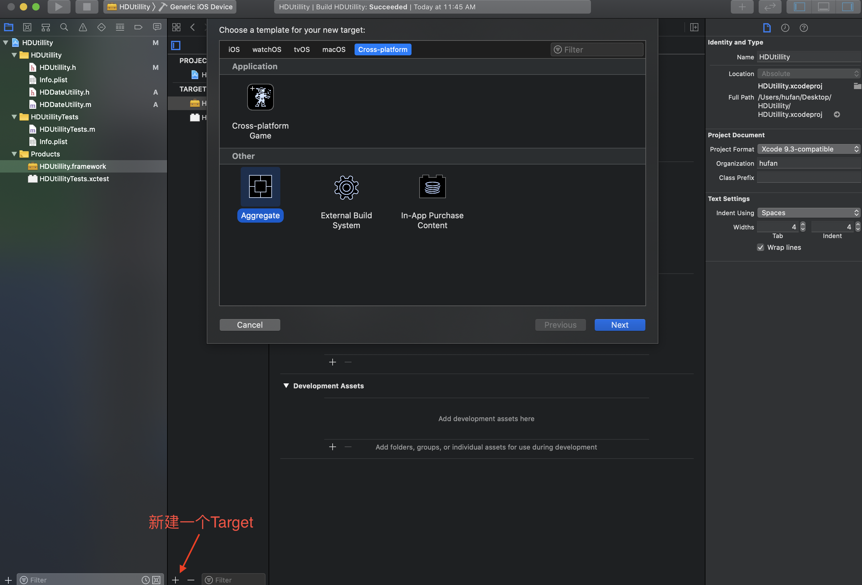 新建一个target,选择Aggregate,名字自己取。