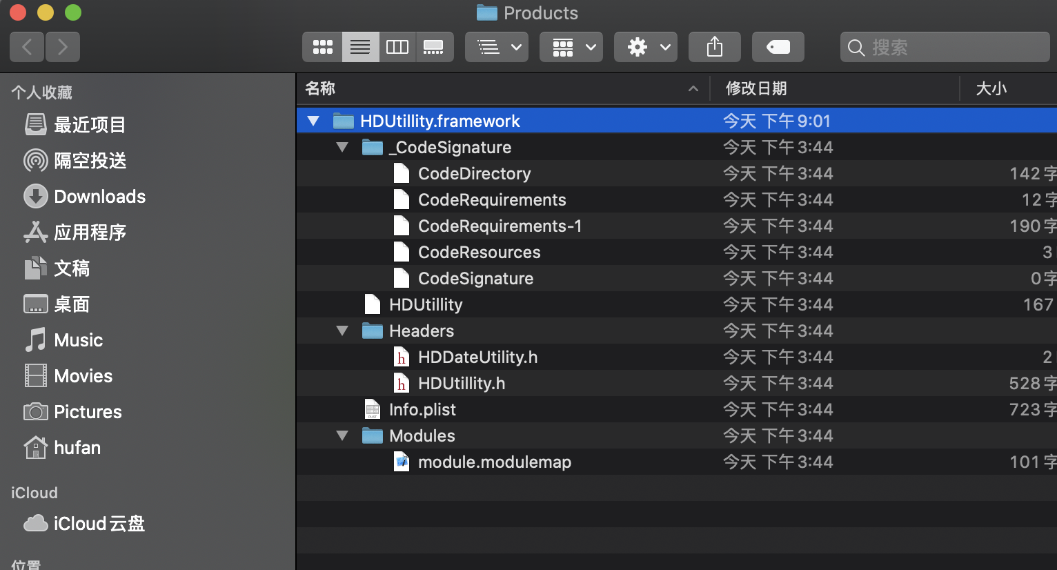 选择刚创建的aggregate,编译,cmd+B快捷键,就会跳出编译好的Framework文件,