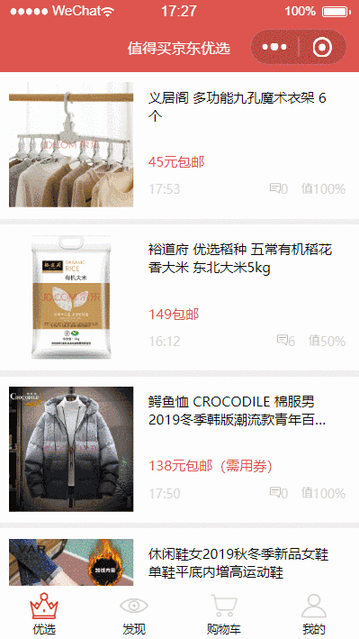 咳咳,好了不皮了,言归正传。微信推出的小程序可谓是轻量又强大,所以最近我也开始了小程序的学习,学了挺多也看了很多文档,但总觉得自己没学到什么,感觉很迷茫。正所谓实践出真知,所以我选择了从高仿别人的小程序开始,选来选去最后选择了京东优选这个小程序(绝对不是因为它的界面清爽!)。
