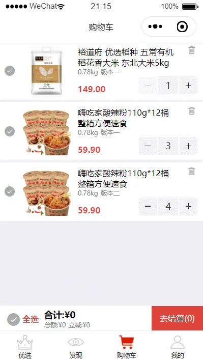 然而巧的是,我就是那个最幸运的鹅,步进器我用的是有赞Vant Weapp组件库里的,我搜索了很多资料都没有找到有效的解决方案,差点就放弃使用组件库了,好在最后发现京东优选小程序购物车绑定的跳转事件是在商品的图片和标题上。