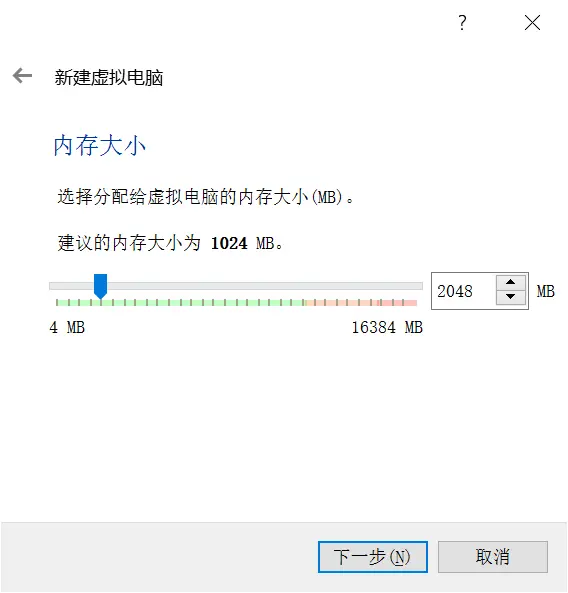 - 下一步,内存设置,内存不能少于2G,