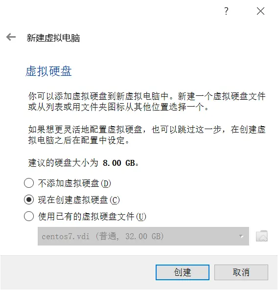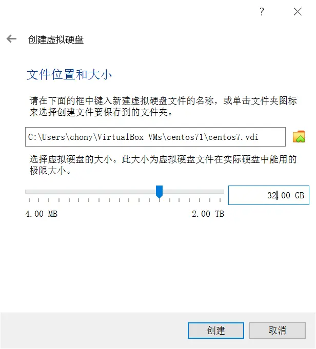 - 下一步,新建虚拟硬盘,32G差不多了