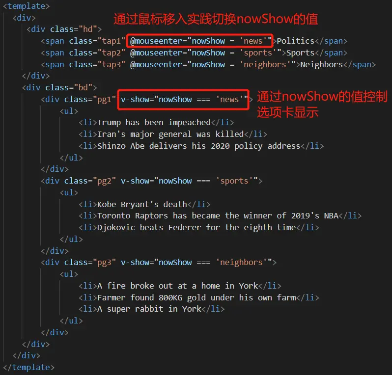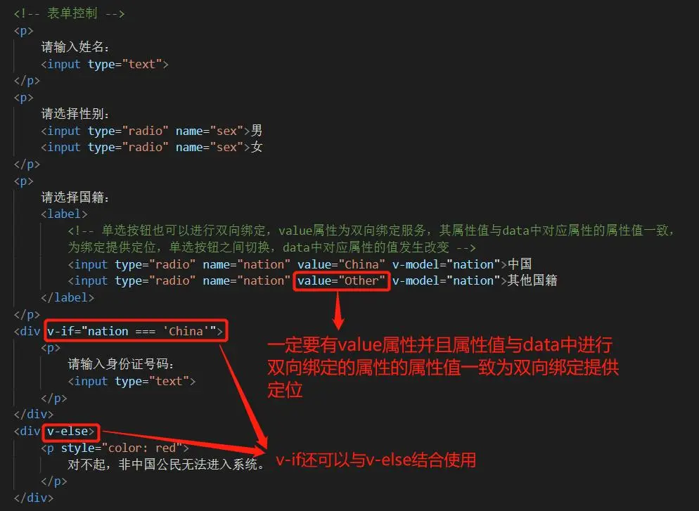 下面是v-if结合表单元素的运用,以及会有一个单选按钮的双向绑定示范: