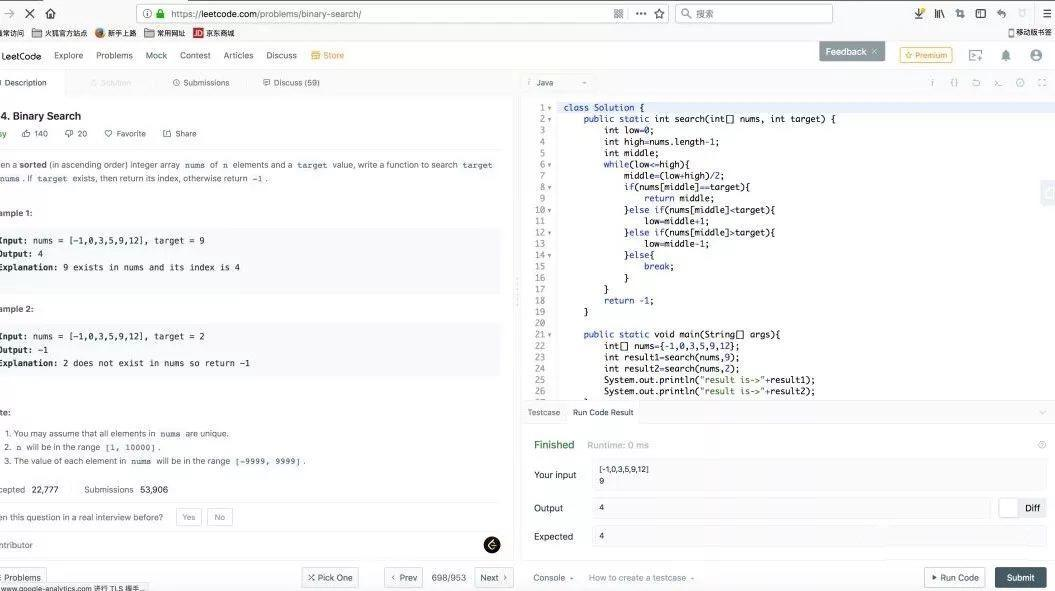 好了,到这里就讲完二分查找算法的基本原理了,那么在具体的程序代码中,二分查找算法应该如何实现呢?以下为大家准备了Java/Go/Python三种版本的实现,大家可以在leetcode上尝试自己实现下。