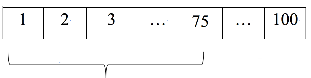 第二次,我们从51~100之间再取中间元素进行判断,取75进行判断,75依然比100小,那么51~75这一段的数字也就直接排除掉了。
