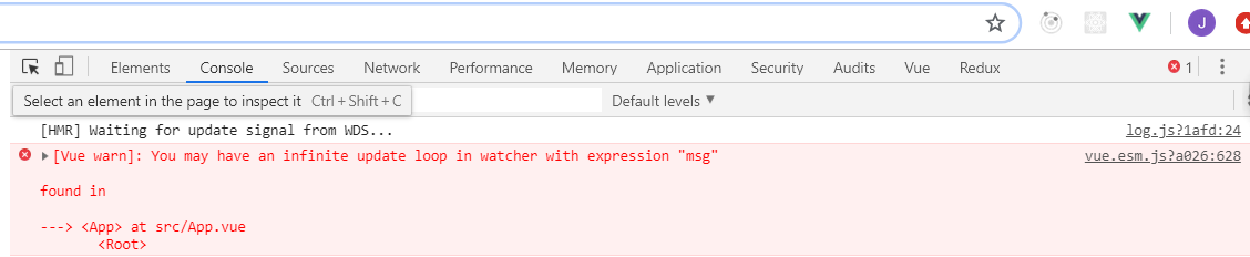 但还没有结束,我们注意到watcher.run之后还有还有一个if判断,抛出一个错误。这是在做什么呢?其实是为了防止代码中出现无限循环更新,比如如下代码。当点击h1时,数据发生变化,触发派发更新。此时有两个 watcher 订阅了数据的变化(一个自定义的watch(user Watcher)、一个渲染Watcher),执行到watcher.run时,对于user Watcher来说,回调函数就是我们定义的函数,会执行函数,再次改变数据,再次调用queueWacther,此时flushing状态为true,会在队列中向user Watcher后添加一个同样的user Watcher,此时has[id] != null,会进入if判断,计数加一,此过程循环往复,源码规定当计数超过100时,抛出错误,循环终止。