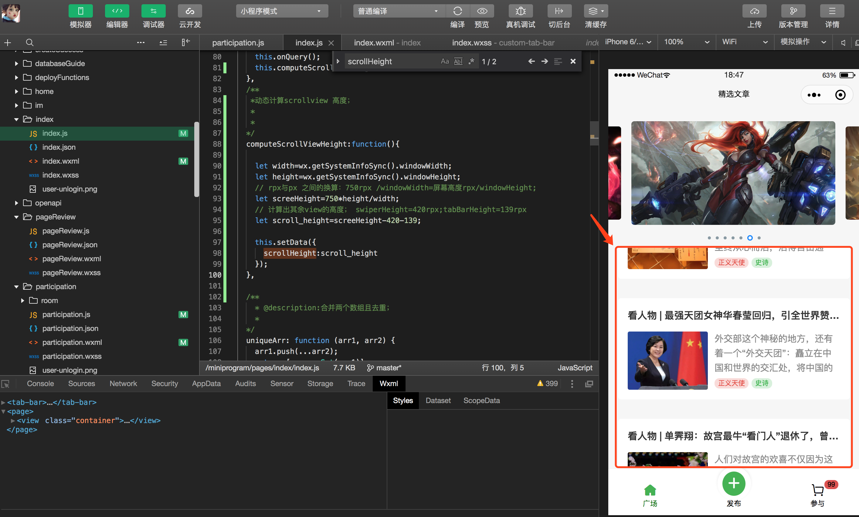 index.wxml scroll-view高度动态渲染标签如下所示: