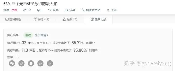 可以看到,时间和空间还有提升的余地。想到的可能优化方法是类似于0-1背包那样,去掉动态规划数组的第二个维度,来优化空间复杂度。