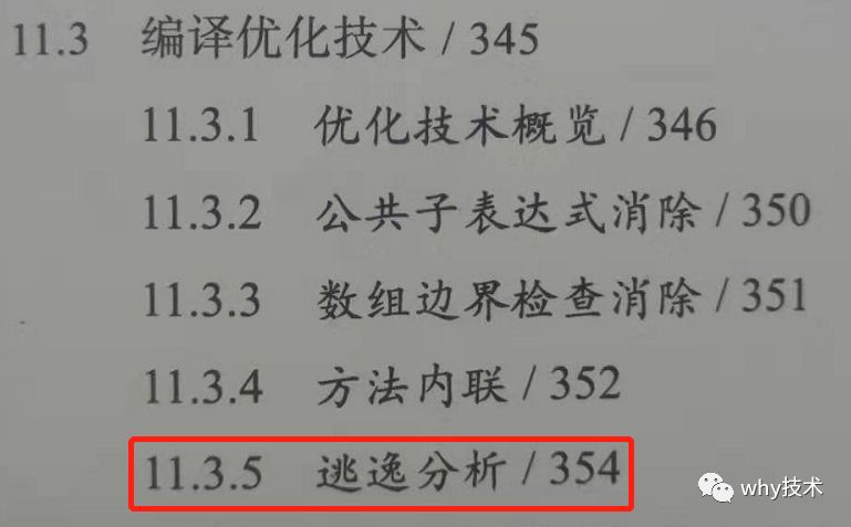 其实《深入理解Java虚拟机》里面也有对逃逸描述的相关内容,有兴趣的可以翻阅一下。如下:
