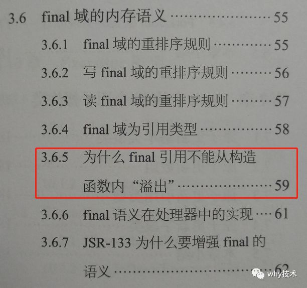 我浏览目录的时候注意到了其中3.6.5小节的标题是:《为什么final引用不能从构造函数内“溢出”》