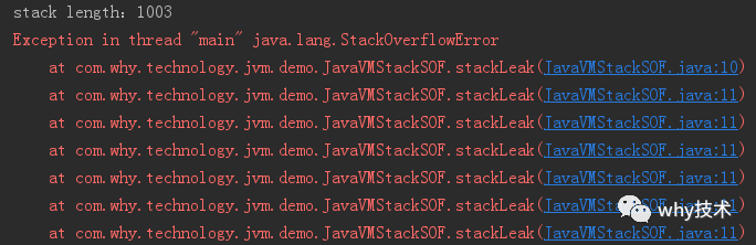 如果线程请求的栈深度大于虚拟机所允许的最大深度,将抛出StackOverflowError异常。