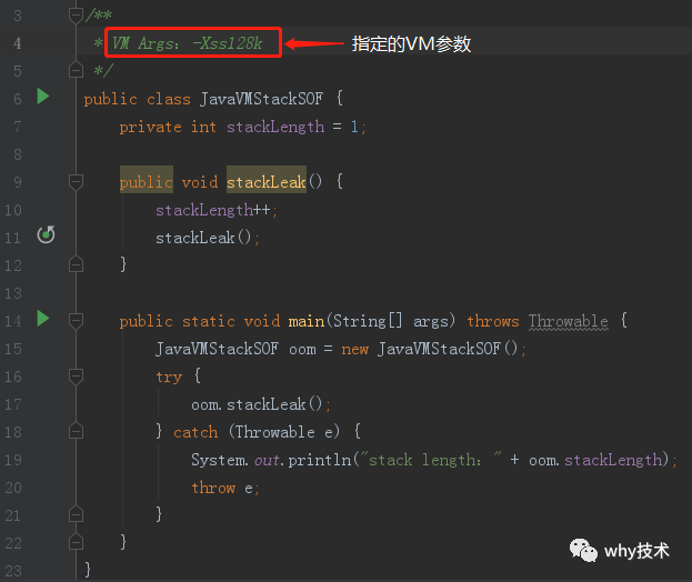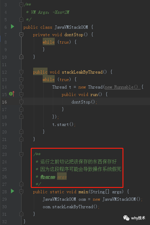 在《深入理解Java虚拟机》笔者的实验中,将实验范围限制于 单线程中的操作,尝试了下面两种方法均无法让虚拟机产生OutOfMemoryError异常,尝试的结果都是获得StackOverflowError异常,测试代码如下所示。