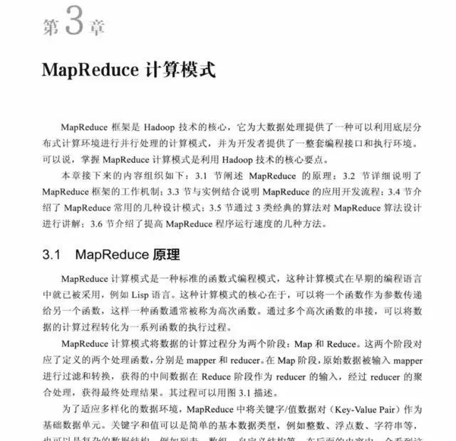 第3章深入剖析了MapReduce 计算模式,包括原理和工作机制,介绍了实用性的MapReduce应用开发方法,并结合简单的实例讲解了几类常用的MapReduce设计模式,同时以3个经典算法为例讲解了MapReduce算法的设计精髓,最后给出了一些重要的MapReduce程序优化的方法。