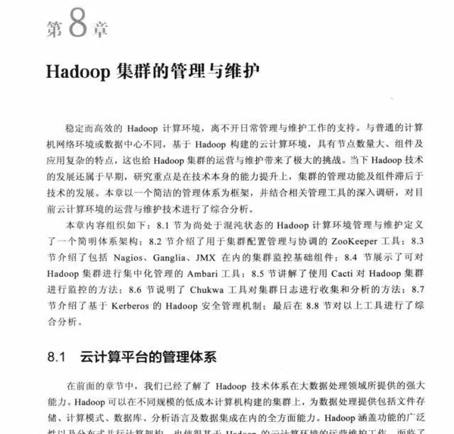 第8章介绍了集群管理者所关注的管理与维护体系和相关工具,从配置管理、集群监控、故障处理与安全性等角度梳理了目前常用的Hadoop 集群管理工具,并进行了总结与对比。