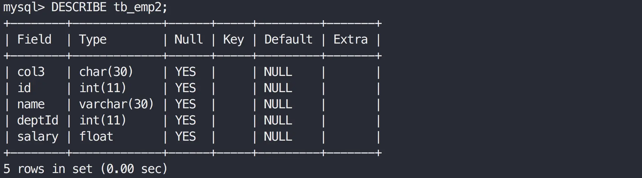 DESCRIBE tb_emp1;