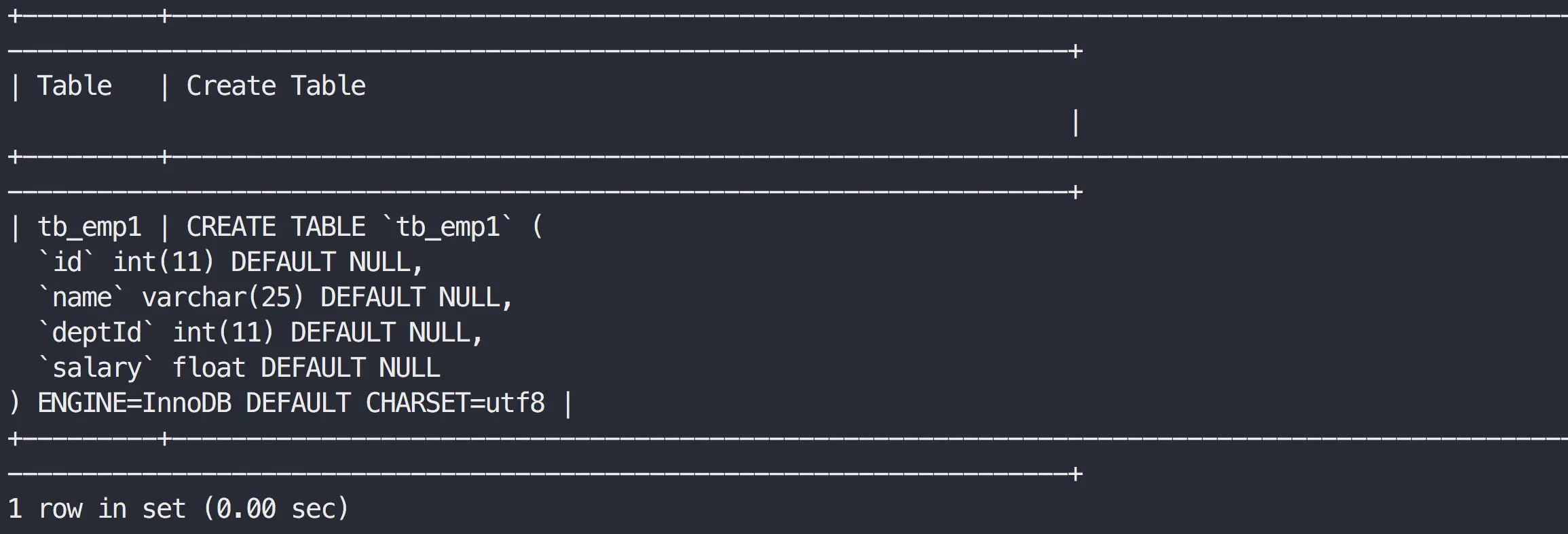 SHOW CREATE TABLE tb_emp1;