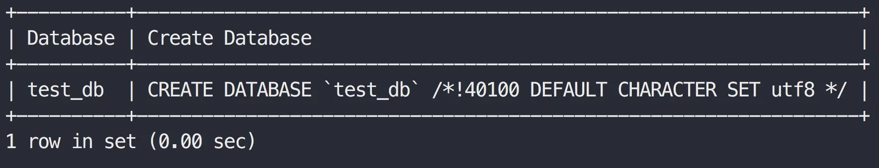 CREATE DATABASE test_db CHARACTER SET utf8 COLLATE utf8_general_ci;
