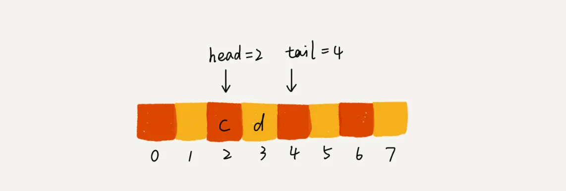 当进行两次出队的操作后,head指针将指向下标为2的位置