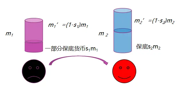 进行交易时,双方会保留一部分的财富作为保底财富,只拿一部分出来交易。