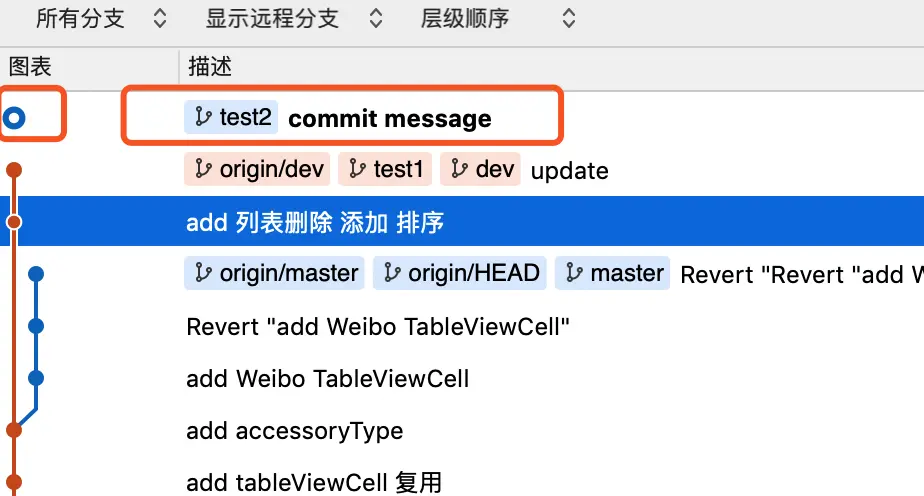 orphan译为“孤儿”,该参数表示创建一个孤立的分支,没有任何提交历史,且与当前分支不存在任何关系(查看提交信息,可发现其为一个孤立的点,如下图所示)孤儿(