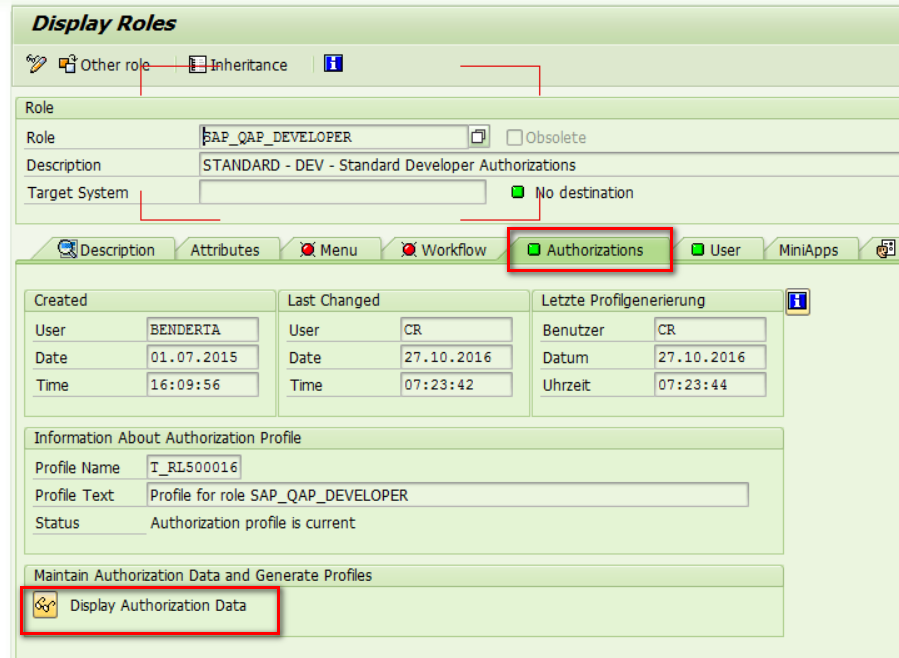The above pictures mean: If a given user is assigned with PFCG role SAP_QAP_DEVELOPER, the user wil automatically have enough authorizations ( ACTVT 01, 02 and 03 all allowed ) defined by authorization object S_CARRID.