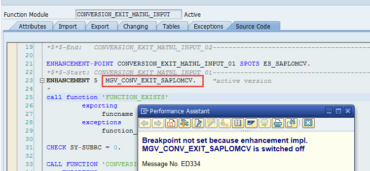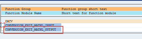 But the ENHANCEMENT 8 MGV_CONV_EXIT_SAPLOMCV in CONVERSION_EXIT_MATNL_OUTPUT is still switched off which is same as in FM CONVERSION_EXIT_MATNL_INPUT. So we just can see null external long material number in view "material identification".