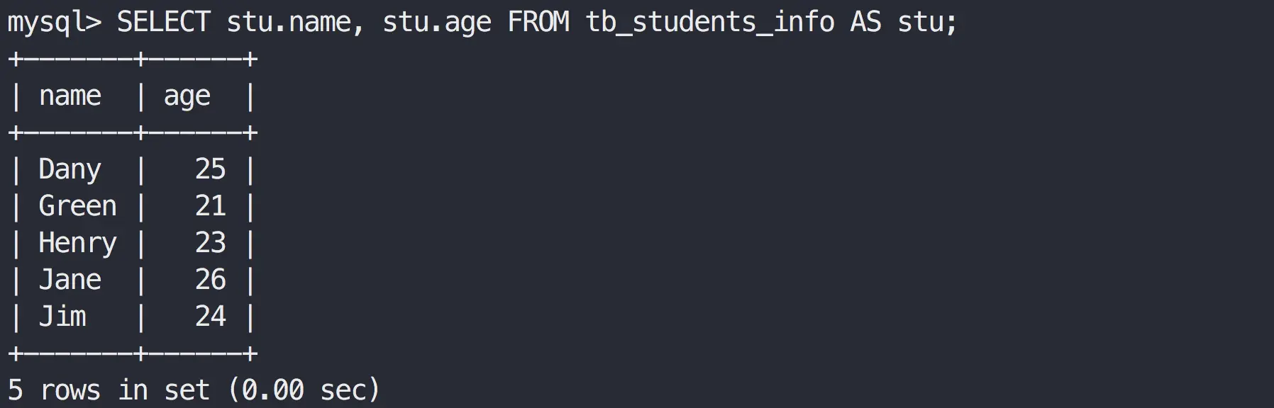 SELECT name AS student_name, age AS student_age FROM tb_students_info;