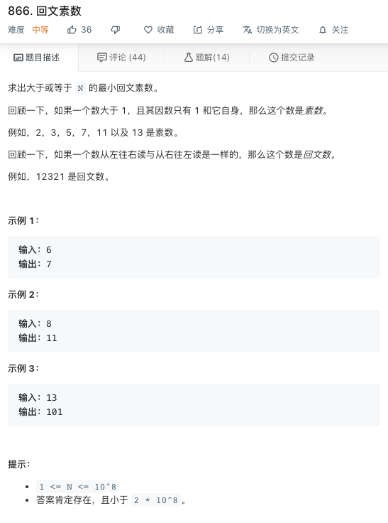 866. 回文素数