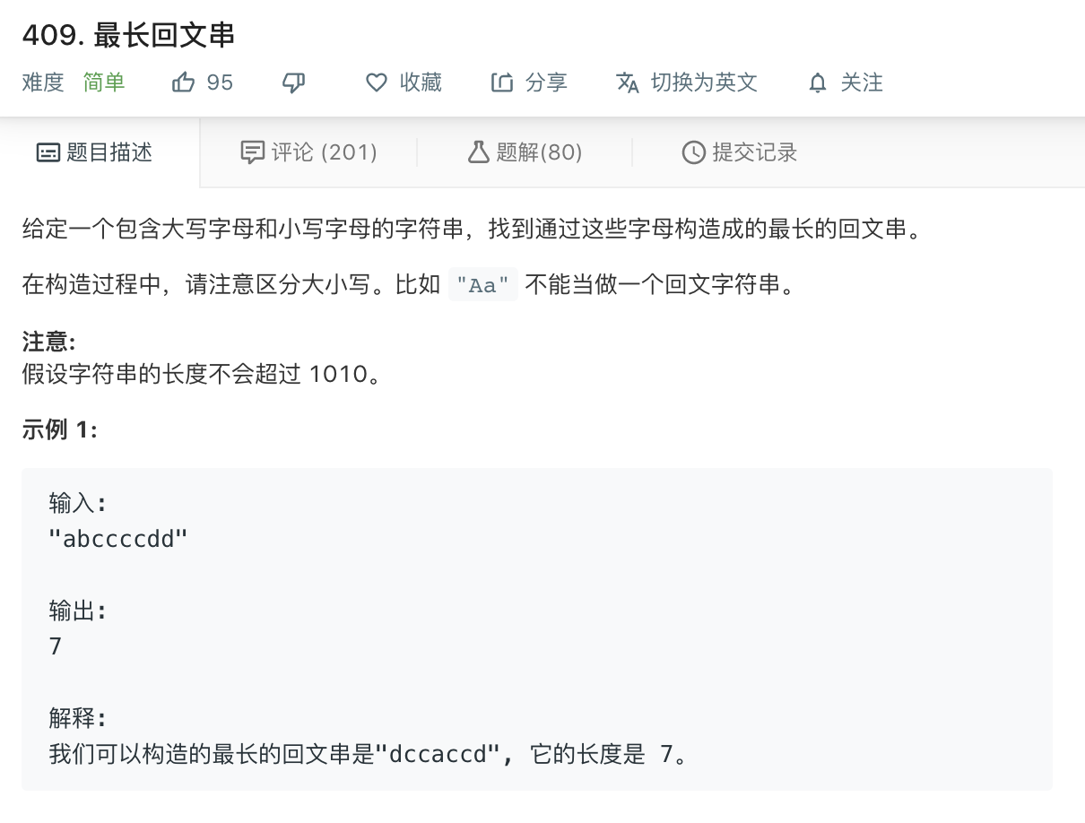 409. 最长回文串