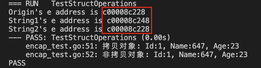 fmt.Printf("String2's e address is %x\n", unsafe.Pointer(&e.Name))
