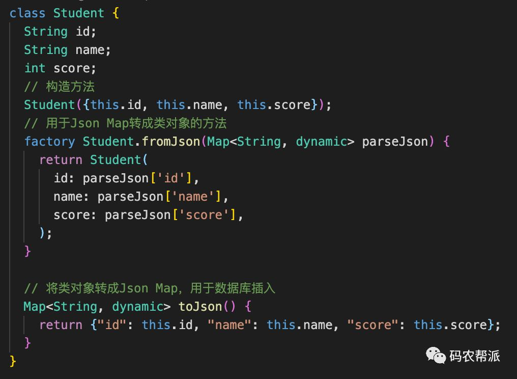 数据库的读写一般会用到对象类,下面以Student对象类为例: