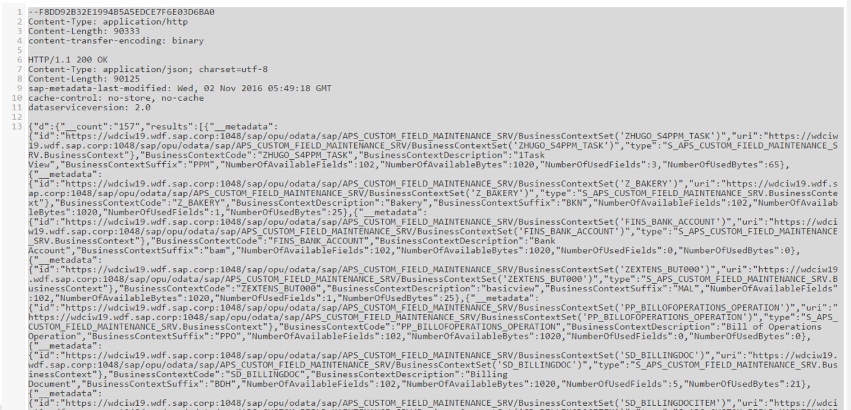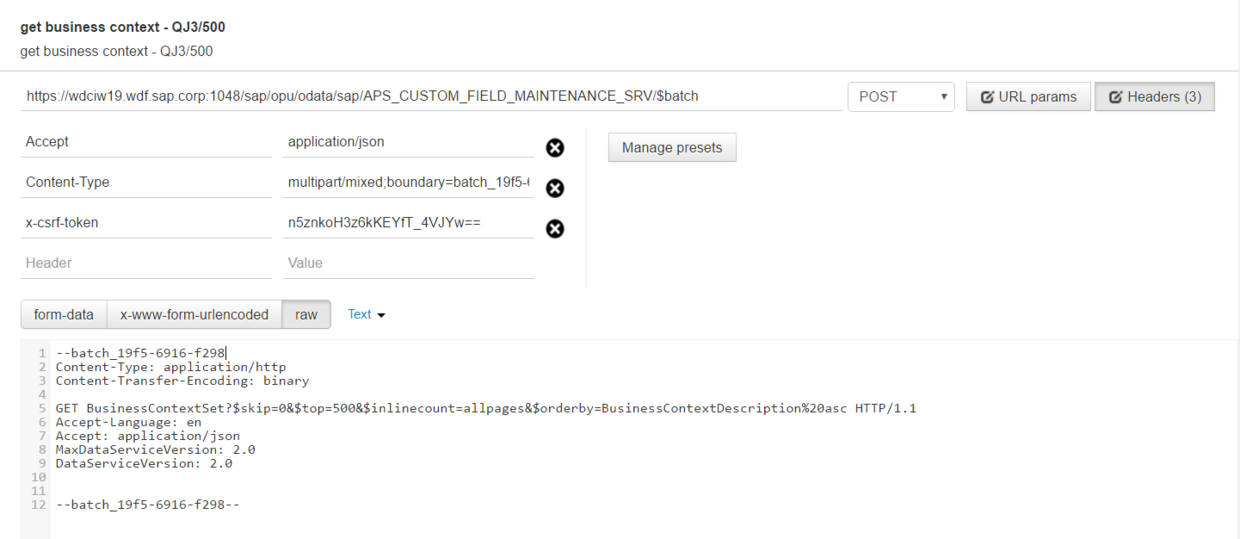For research purpose, we can get a list of all available business context and save it locally via a Batch request in postman: