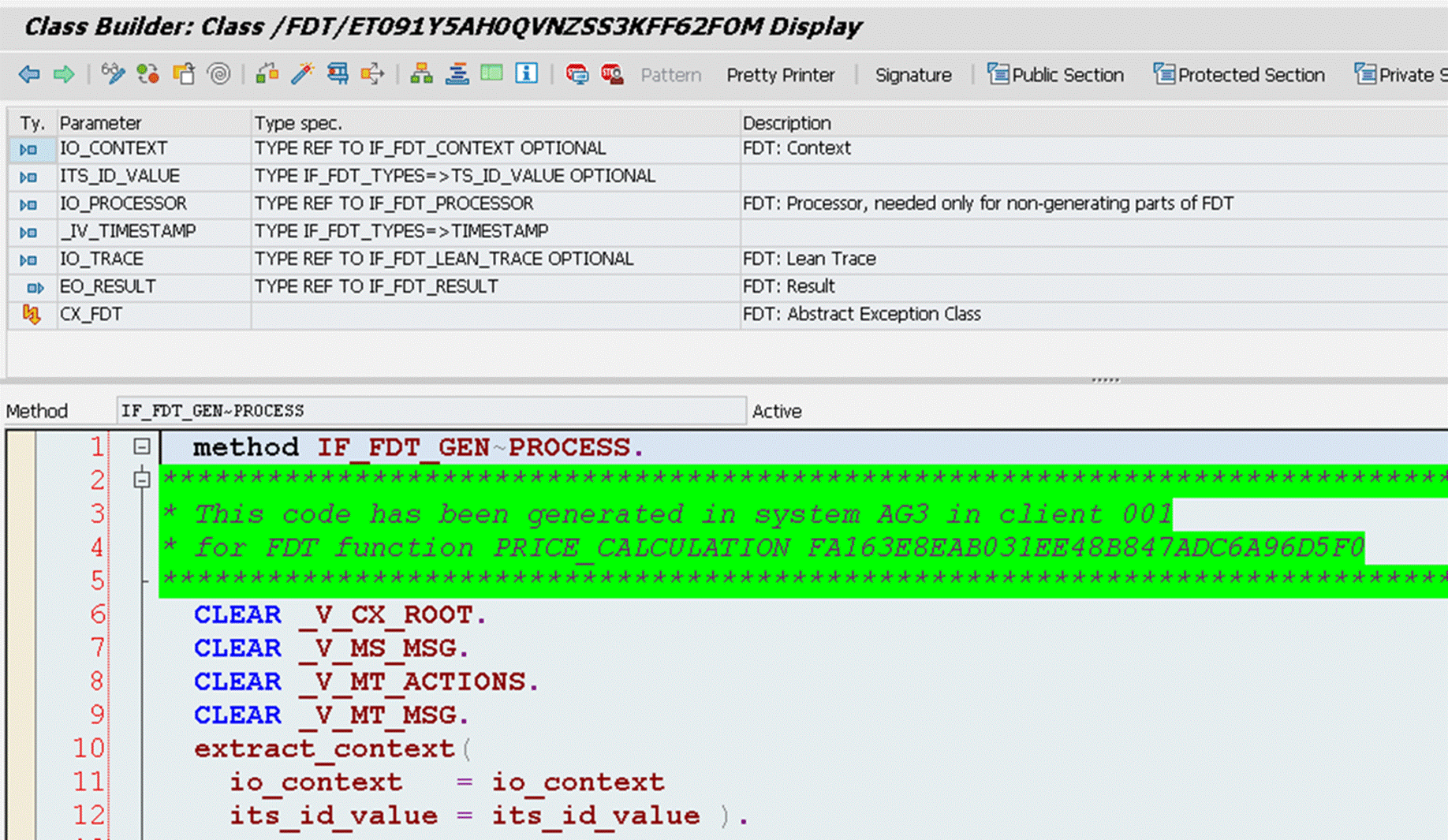 如果选择Generation mode时,rule的执行由此generated ABAP class来完成: