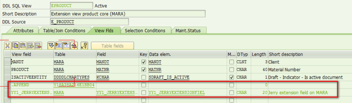 (1) any view which has association to E_PRODUCT will also be extended as well. - WRONG! (2) any DDIC object which has below structure included will automatically be extended as well: