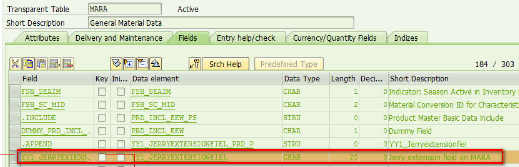 Suppose I have extended MARA with the following field, how could I know whether there are other tables extended automatically?