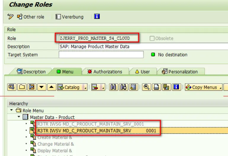 In this case, in order to test Product Master application in those system, you need to create a new PFCG role and assign to your user manually. However, how could you know which Fiori catalog you need to assign to this PFCG role?