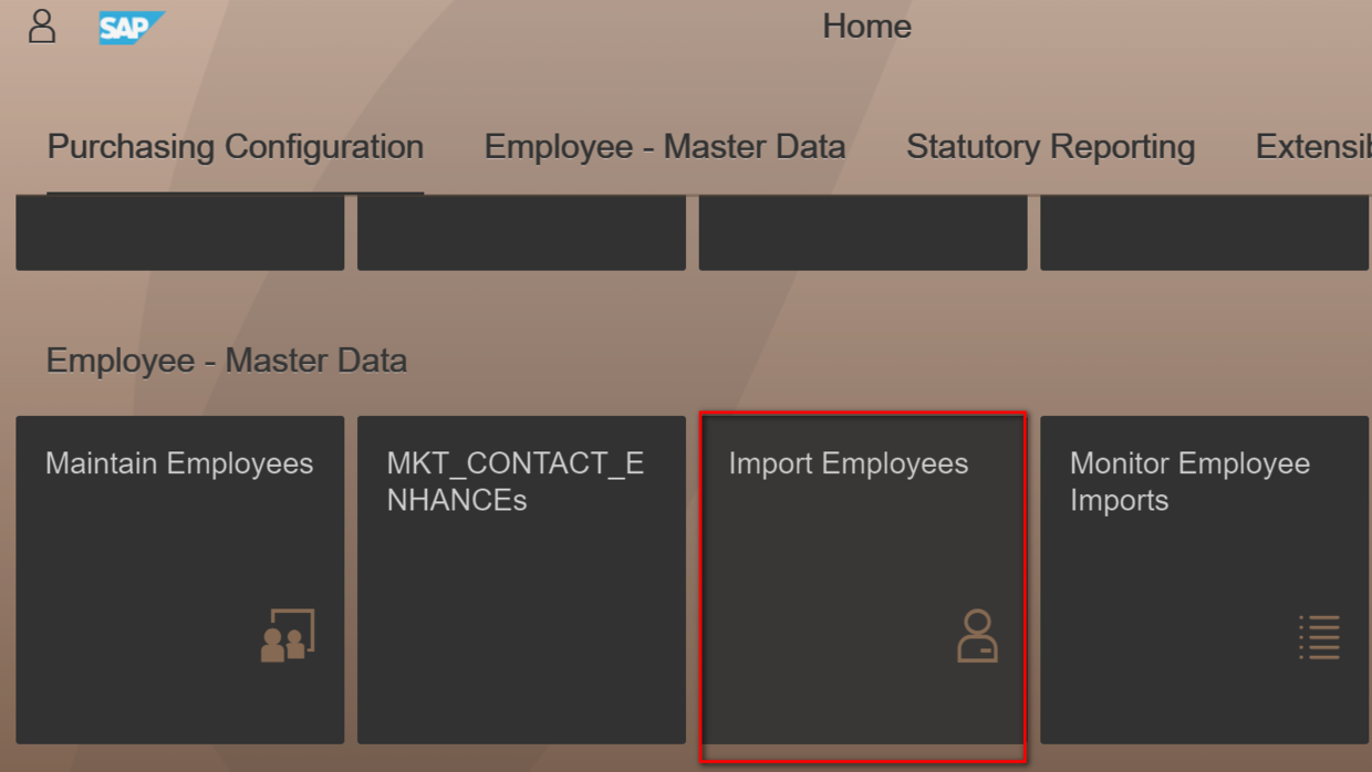 Instead, you have to do it using business user in Fiori UI. Logon Fiori UI with the generic user "ADMINISTRATOR" with password "Welcome1". Click tile "Import Employees":