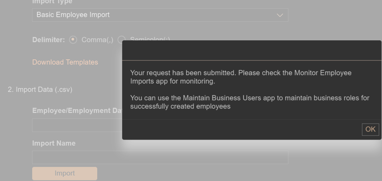 Choose Basic Employee Import from drop down list. Download excel template locally.