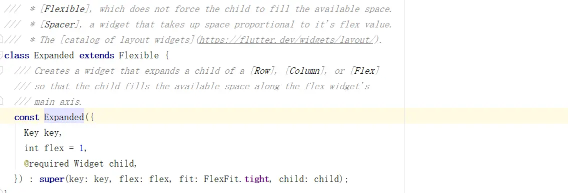 这里我们需要通过其flex属性来指定组件的弹性系数。如果为0或null,则child是没有弹性的,即不会被扩伸占用的空间。如果大于0,所有的Expanded按照其flex的比例来分割主轴的全部空闲空间。