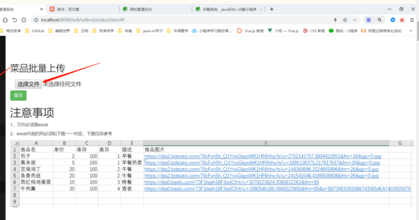 到这里我们就完整的实现了点餐系统批量导入菜品数据到数据库的功能了。