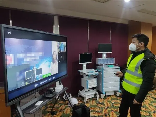 通过这一平台,使得远在北京的的优质医疗专家,可通过远程视频连线的方式,与火神山医院的一线医务人员一同,对病患进行远程会诊。