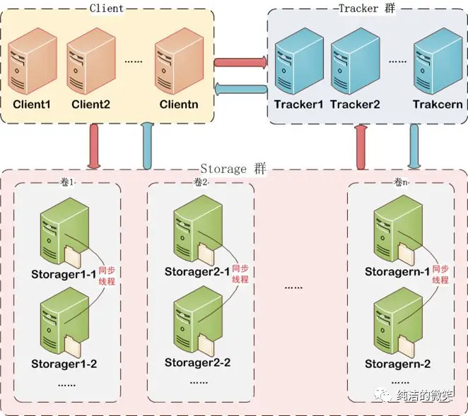 client:客户端,作为业务请求的发起方,通过专有接口,使用TCP/IP协议与跟踪器服务器或存储节点进行数据交互。FastDFS向使用者提供基本文件访问接口,比如upload、download、append、delete等,以客户端库的方式提供给用户使用。
