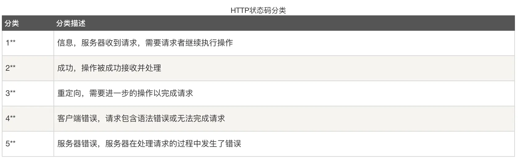 HTTP状态码分类